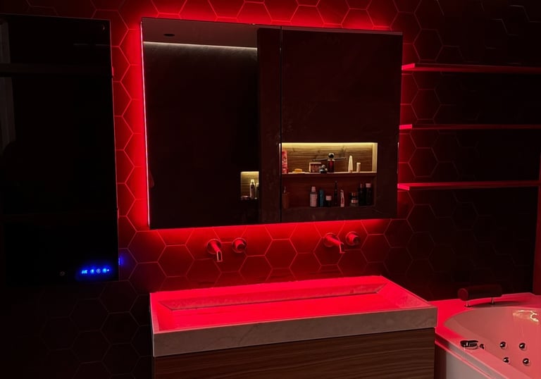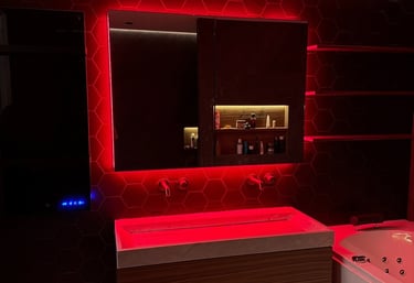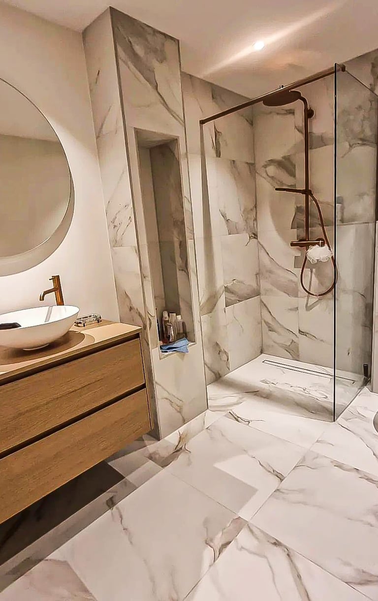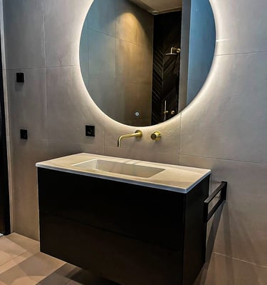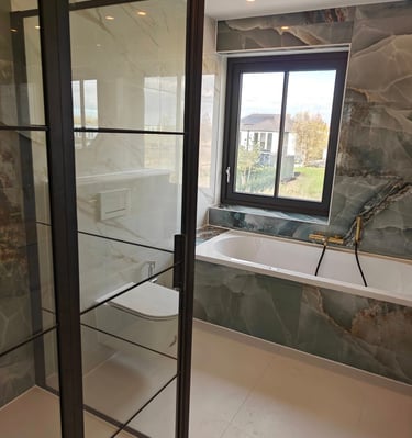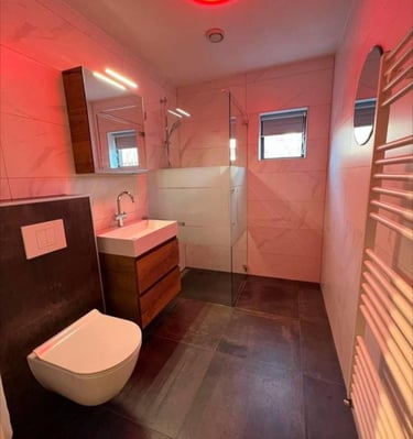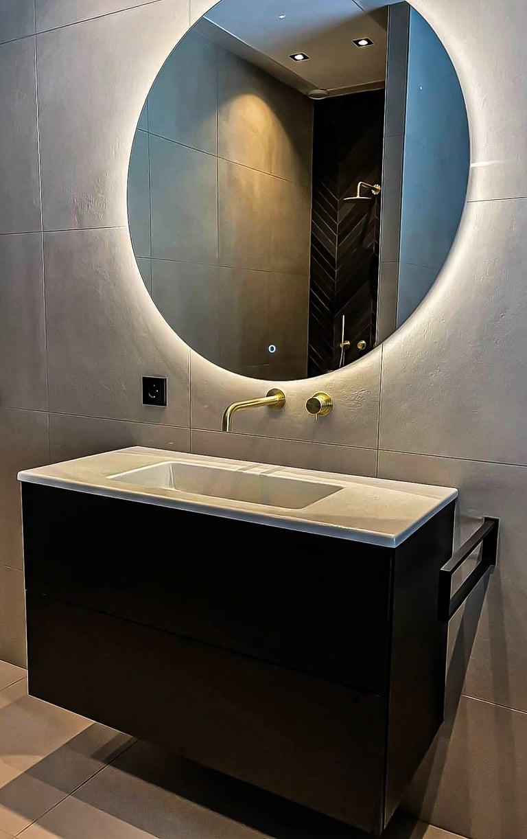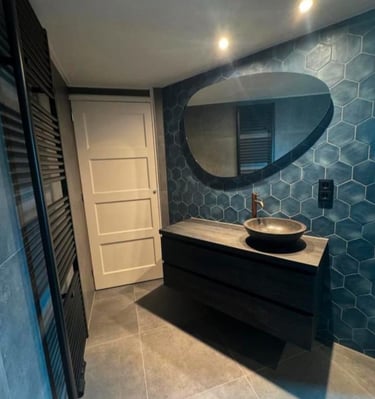 Van LED-accenten tot natuursteen en moderne tegelafwerking, wij creëren badkamers met karakter en klasse.
