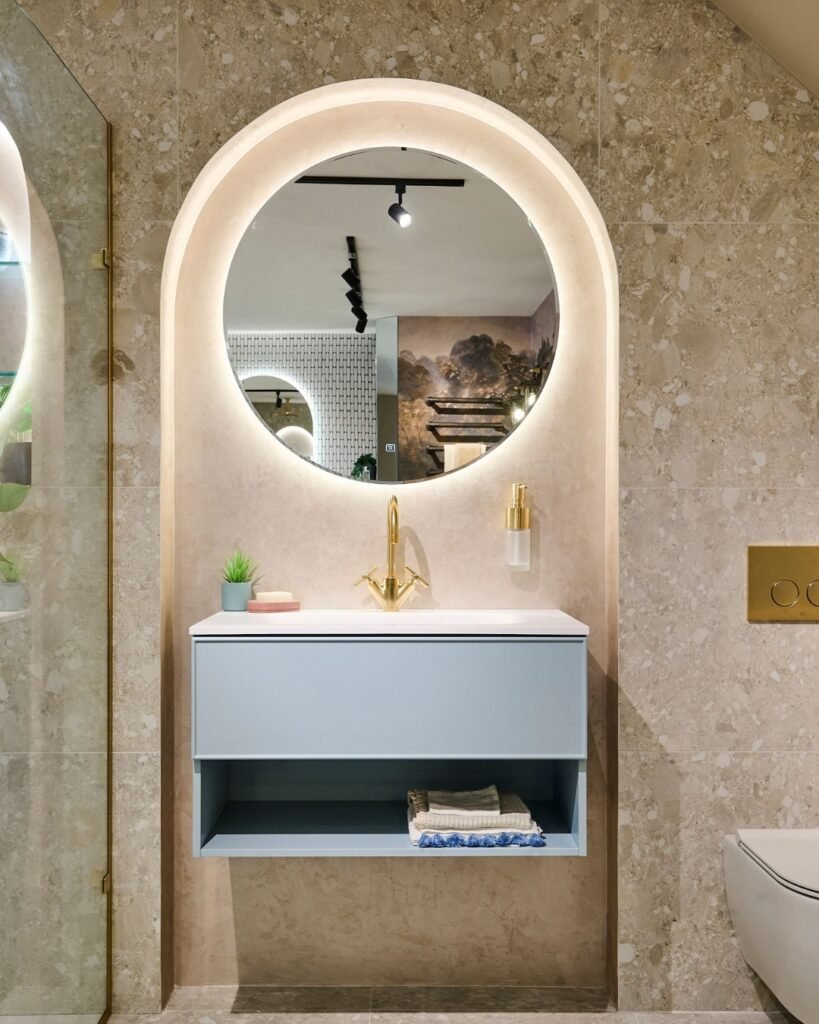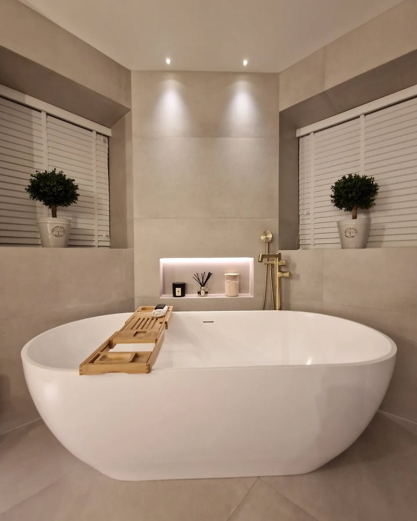 Warme materialen, zachte verlichting en elegante details zorgen voor een gevoel van comfort en ontspanning.